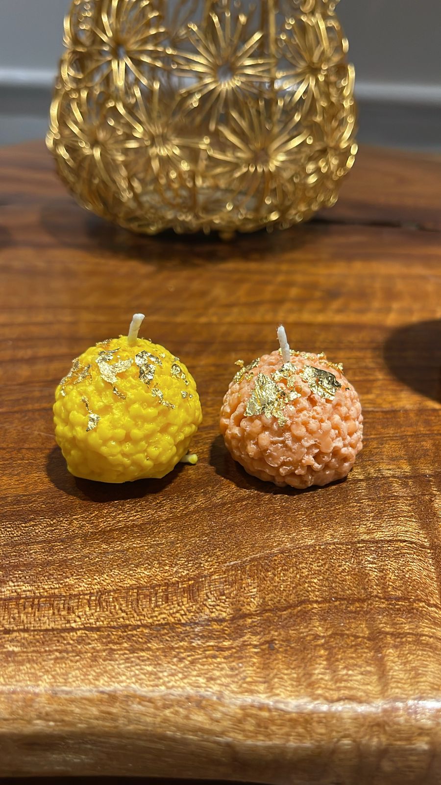 A little globe of gilded delight – hand-poured with a unique, bubbly texture and finished with a touch of real gold leaf. Perfect for adding a tiny, luxurious sparkle to any setting.