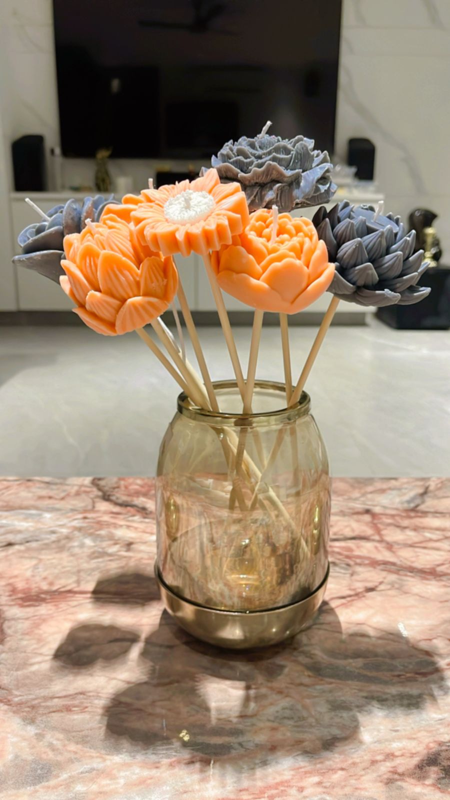 A touch of desert serenity – hand-poured in a cool teal shade and crowned with a trio of intricate wax succulents. Perfect for bringing a calm, botanical vibe to your modern decor.